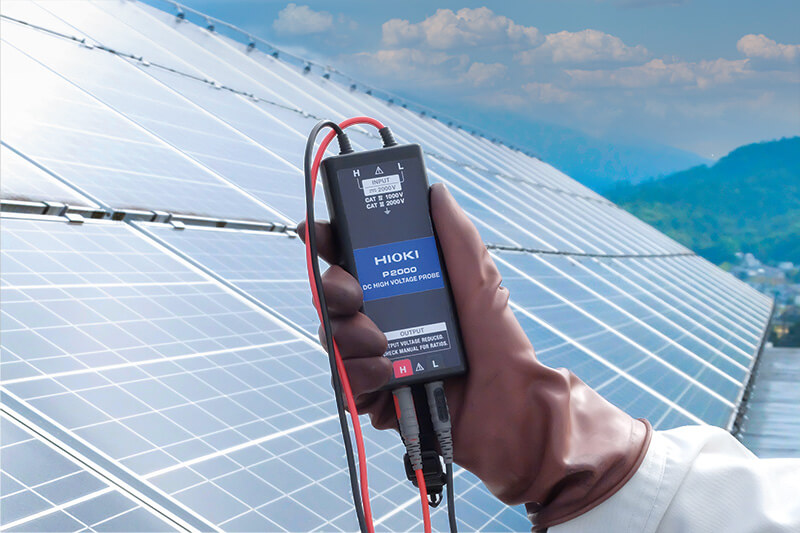 - 只需將直流高壓探頭 P2000 連接到兼容的 Hioki 鉗形表和數字萬用表 (DMM),即可安全地測量大型太陽能等太陽能裝置,而無需中斷電網