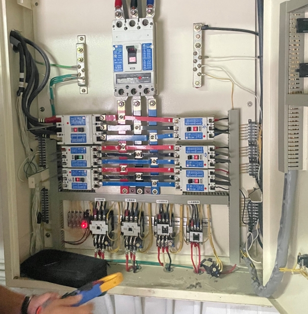 照片為將CM3286-50依照儀器步驟指示夾取至配電盤