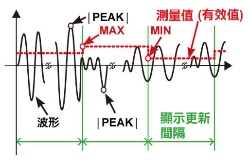 並且能夠顯示最大值(MAX)、最小值(MIN)、平均值(AVG),因此有助於使用者掌握數據的變化情況。此外它還能夠測量波峰值(PEAK)的最大值,這使得使用者能夠準確確認波峰值電平的變化,提供了更全面的數據分析和評估。