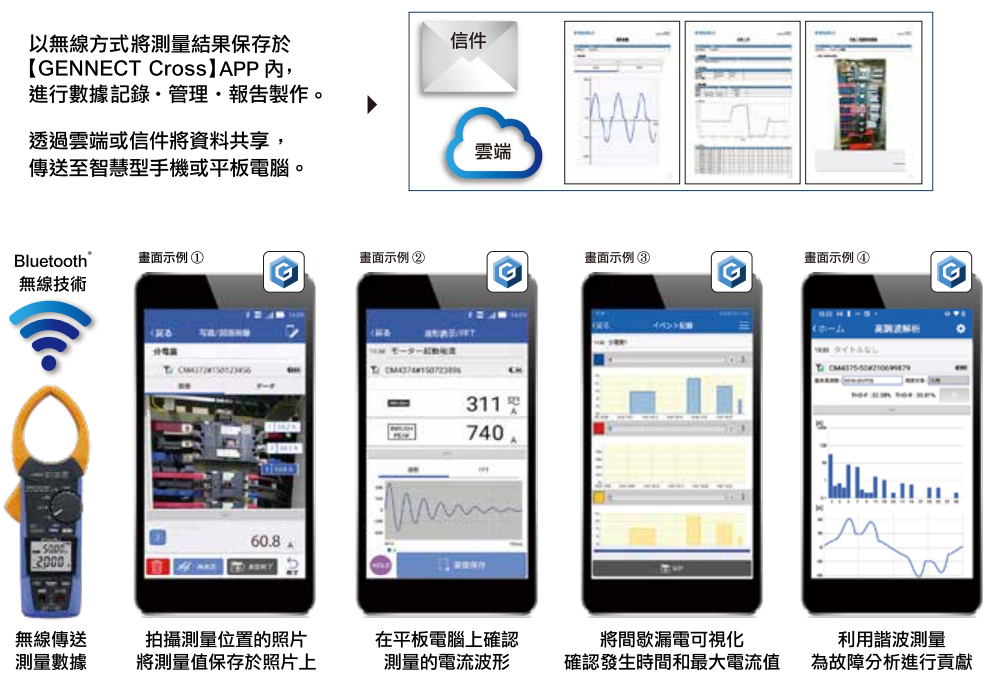 Cross應用程式,您可以輕鬆地進行測量結果的確認、管理以及報告製作。此外,您還能夠在測量現場拍攝照片,並將測量結果以手寫方式備註,將其直接融入照片中,實現數據的即時管理和流暢傳輸。